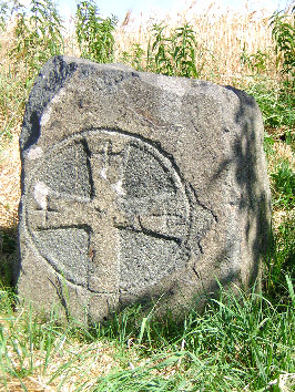Steinkreuzformen können Aussagen über involvierte Personen ausdrücken; wahrlich erweckt diese Steinkreuzform den Eindruck von ‘schlank und rank’ - genau um den Bezug auf ein 14jähriges Mädchen figürlich herzustellen (Verf.) |