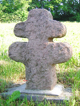 *Doppelbalkenkreuz: lat. ‘crux gemina’ - Zwillingskreuz, weitere Bezeichnungen sind: Patriarchenkreuz, Kardinalskr. Lothringerkreuz sowie Spanisches- oder Caravacakreuz, auch die Bezeichnungen Ungarkreuz, Wienerkreuz, Engelskreuz u. Jerusalemerkreuz finden Verwendung; der Ursprung dieser Kreuzform lässt sich bis in römische Zeit zurück verfolgen; als Kaiser Konstantin das Christentum zur Staatsreligion erhob, wurden über den weit zerstreuten Bischofssitzen des gesamten Reiches übergeordnete Patriarchdiözesen, wie etwa Rom, Konstantinopel, Alexandrien, Antiochien und Jerusalem eingerichtet; als Zeichen dieser vorrangigen kirchlichen Machtbereiche wurde das Doppelbalkenkreuz eingeführt, das nur noch vom päpstlichen Kreuz mit drei Balken übertroffen wurde; später galt dieses Kreuz als Erkennungszeichen der ungarischen Könige, des Ritterordens Vom heiligen Grab sowie auch als Zeichen im Kampf gegen die Ungläubigen in Spanien und Wien; im ausgehenden 15. Jh. nahmen es die Herzöge von Lothringen in ihr Wappen auf; seine Aufstellung vor Städten, Flecken, Dörfern und im freien Felde erfährt es im 17. Jh. zum Schutze gegen die Pest und Unwettern; zuweilen wurde es auch an den Stationen der Prozessionswege errichtet (Quelle: 1. ...wikipedia.org- doppelbalkenkreuz) |
