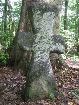 G (links): Obertägige Maße: Höhe 1,20 m, Br. 0,62, T. 0,16, Steinkreuz lat. Form aus Granit mit Kopf- und Schafterweiterung, wobei der Kopfbalken markant ausgearbeitet ist, Querbalken parallelkantig; das Kreuz wird, nach dem Namen der Besitzerin, auf deren Grund es früher stand, 'Weitlof'-Kreuz genannt (Verf. frei nach ...smircikrize.euweb.cz) |