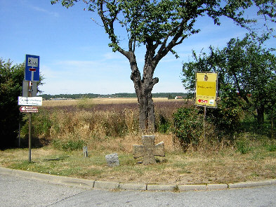 Malschwitz, OT Guttau, Lkr. Bautzen, östl. vom Ort, südseitig an der ‘Guttauer Hauptstraße’ (Str. nach Kleinsaubernitz), jenseits des Grabens am Feldrand, nahe östl. der Aussiedlerhöfe, am alten Abzweig des Weges nach Neudörfel (nicht mehr genutzt), Steinkreuz, Benennung: ‘Kschischomnik’ (Pilk, vierspänniger Kutschwagen) |
