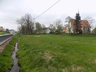 Klingenberg, OT Ruppendorf, Lkr. Sächsische Schweiz - Osterzgebirge, im Ort, auf dem Wiesengelände nördl. der Kirche zur Kreuzung 'Freiberger Straße - Paulsdorfer Straße' hin, westlich nahe des Höckenbach, Steinkreuz |