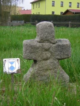 Im mittleren Ortsteil, nordnordöstlich der Kirche, südlich vom Platz, den die Straßenkreuzung bildet, südwestlich der Straße nach Reichstädt, 15 m südöstlich von der Brückenbrüstung, am südwestlichen Ufer des Höckenbaches. 1 Steinkreuz. Kopf und Arme gerade; Schaft weit ausladend, sehr klein. Grobkörniger Sandstein. ONO-WSW (Ausrichtung). Eingeritzte Buchstaben: SSO-Seite auf der Kreuzung großes lateinisches R (möglicherweise Ruppendorf), NNW-Seite auf der Kreuzung großes lateinisches B (möglicherweise Beerwalde). Höhe: SSO-Seite 42 cm, NNW-Seite 47 cm, Briete: 35 cm, Stärke: 12 cm. Allgemeine oberflächliche Verwitterung. Keine Gefährdung; beeinträchtigt durch Verbindung mittels einer Eisenklammer mit anstehendem Grenzstein. Geschützt seit 10. 5. 1972. Sagen: a) Grab aus den Hussitenkriegen. b) Grab von der Pest gestorbener Schweden im 30jährigen Krieg. c) Hier wurde ein Mensch ermordet. d) Grenzkreuz, soll früher an der Flurgrenze zwischen Ruppendorf und Beerwalde gestanden haben. Altbekannt. (Textkopie Lit. G. Müller-H. Quietzsch, 1977) |