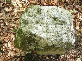 Obertägige Maße: Höhe 0,90 m, (Br. 0,35), T. 0,22, das kalksteinerne, im oberen Bereich arg abgearbeitete Kreuz mit Schaftverbreiterung zeigt etwa über die gesamte Fläche der Ostseite zum Weg hin, die breitrillig eingetiefte Darstellung eines Schwertes mit Parierstange und Griff; südl. Arm verstümmelt; auf dem Scheitel ein kleines lineares Kreuz; im Grunde ist das Schwert ein Symbol des mittelalterlichen Blut- bzw. Hochgerichtes, oft auf Sühnesteinen zu beobachten, und weist als Darstellung daraufhin, dass eine eventuell hier stattgefundene Untat vor dieser Institution verhandelt wurde; das Denkmal steht in der Waldflur ‘Toter Mann’; derzeit keine Sage ermittelbar; trotz Abarbeitung lässt sich das Kreuz in regionale Formtypischkeit einordnen, die unverwechselbar gotische Epoche ausweist - langer, sich verbreiternder Schaft, gedrungener Kreuzstand, wobei die Kreuzform erreicht wird, indem die Arme etwa nur angedeutet gerundet ausgearbeitet sind (Verf.) |